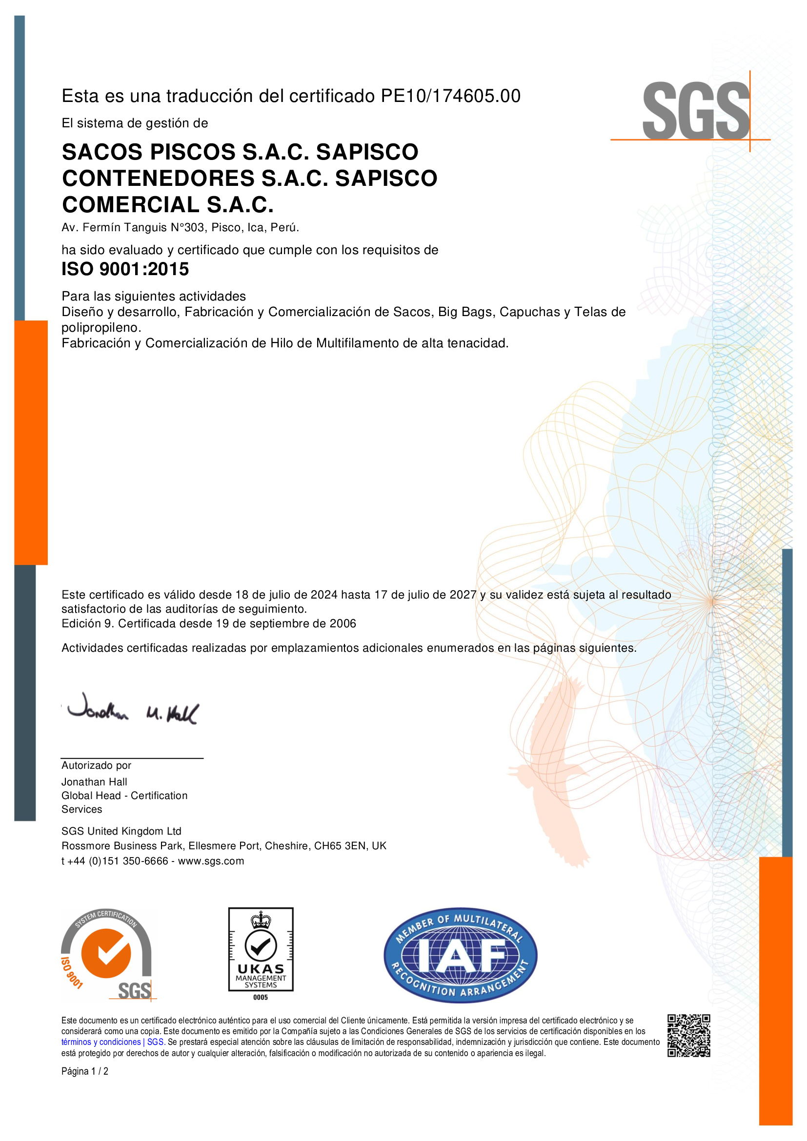 Grupo Sapisco es una corporación industrial peruana dedicada a ofrecer soluciones innovadoras y de alta calidad en el sector de envases flexibles. Contamos con un equipo de profesionales altamente capacitado, comprometido con la excelencia, el desarrollo sostenible, y la responsabilidad social empresarial.